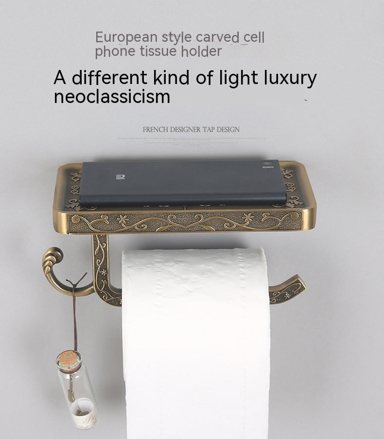 Antique Carved Mobile Phone Stand Bathroom Storage Organize The Shelves Tissue Holder